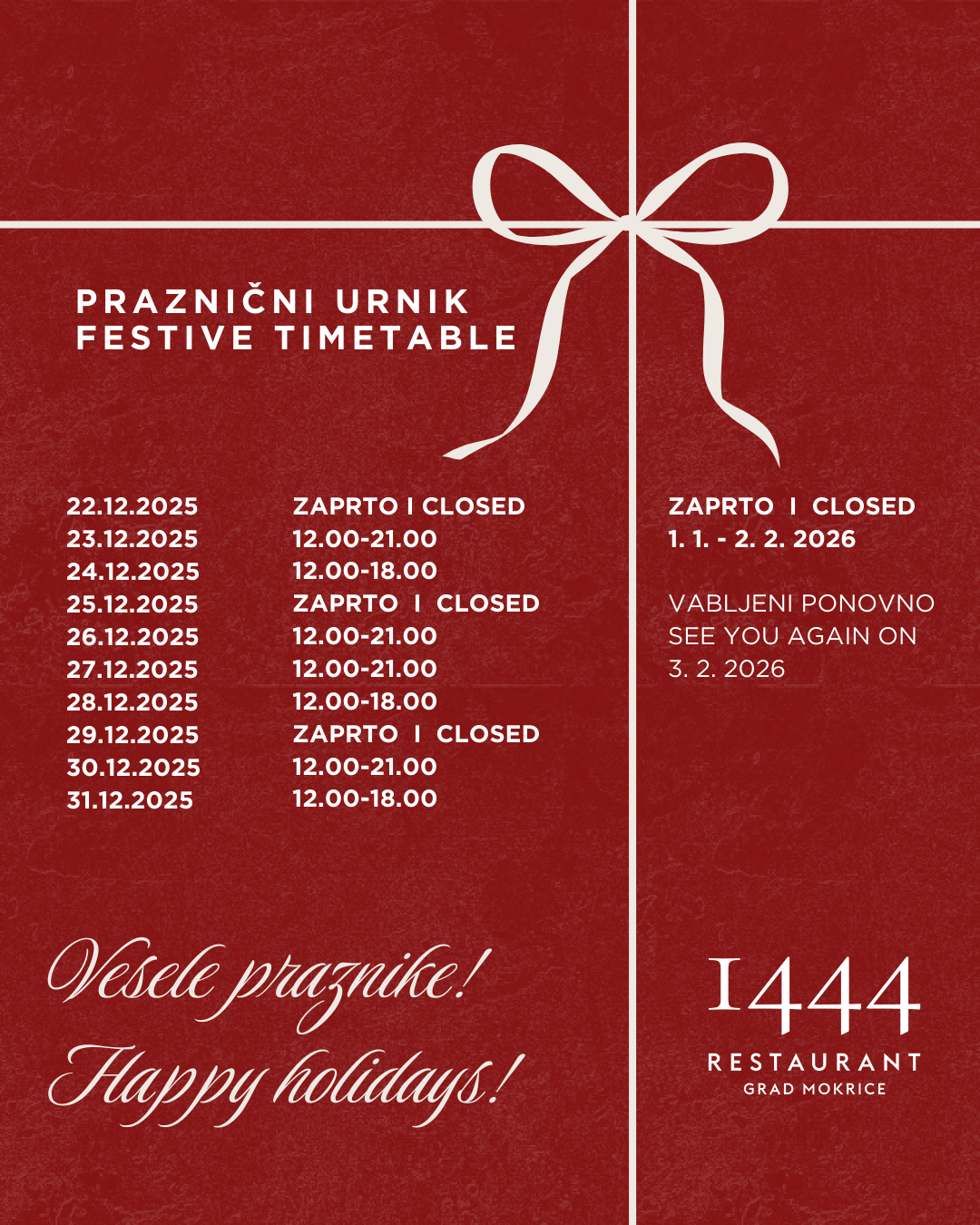 Join us at Restaurant 1444 and discover a dining experience that beautifully marries tradition with innovation, all within the breathtaking backdrop of one of Slovenia’s most beautiful castles. Your table awaits!